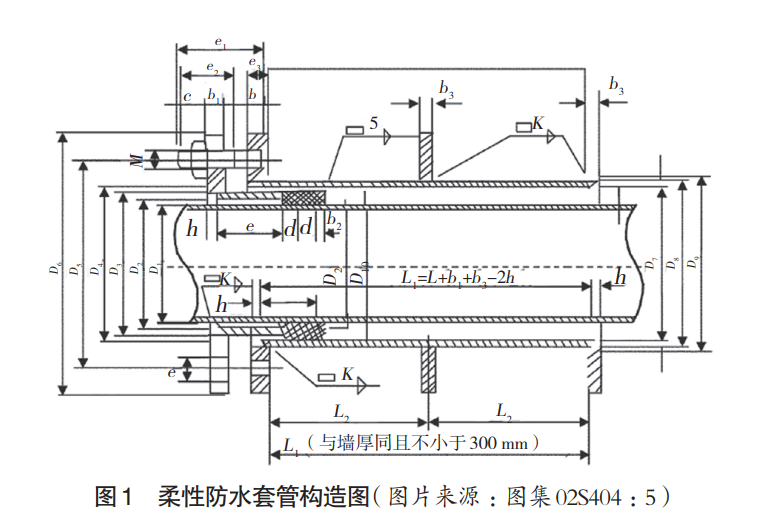 筑功能的发挥,而柔性防水套管的施工技术又影响着防水施工质量,因而在施工中需选择符合要求的防水套管,为
