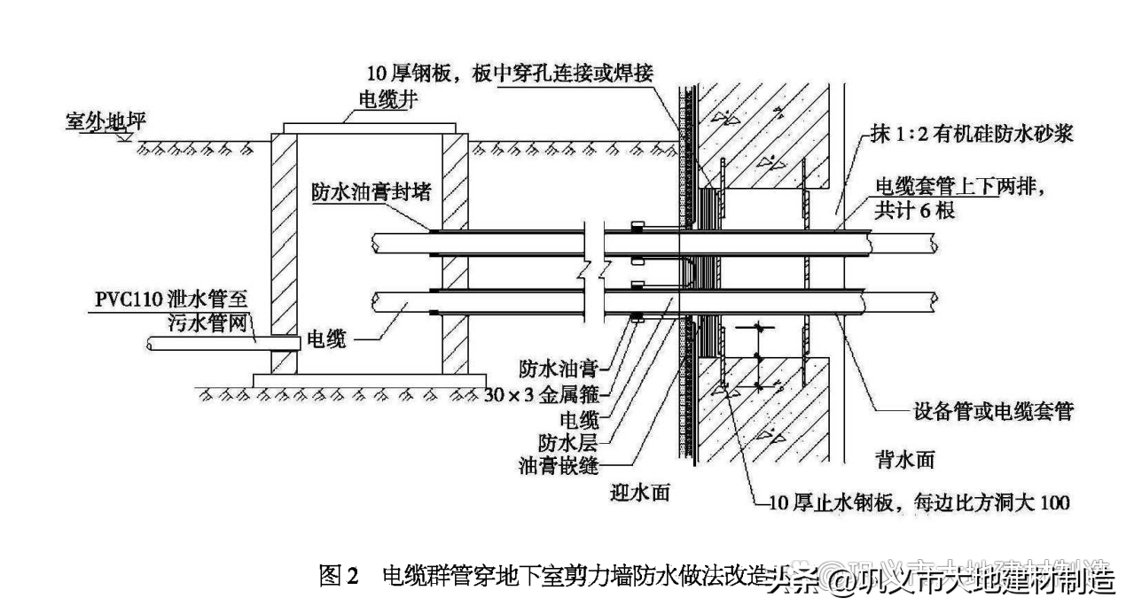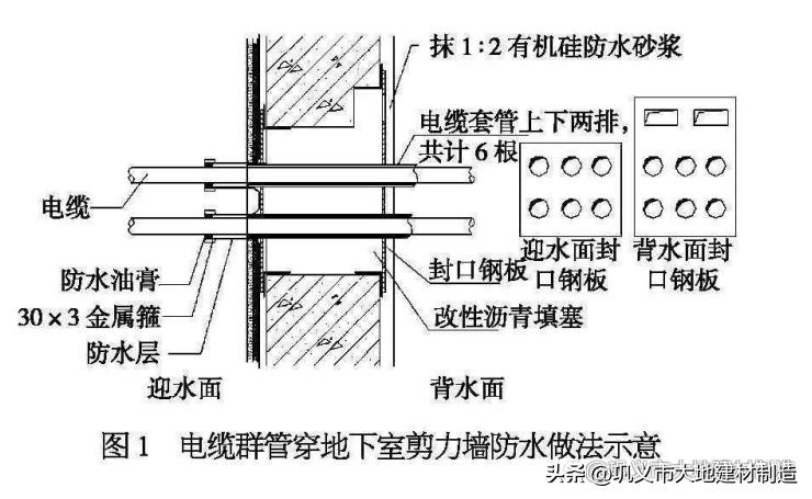 这样,通过上述做法的改造,可以从多个方面防治多根电缆穿剪力墙的漏水隐患,取得了良好的实际效果。
